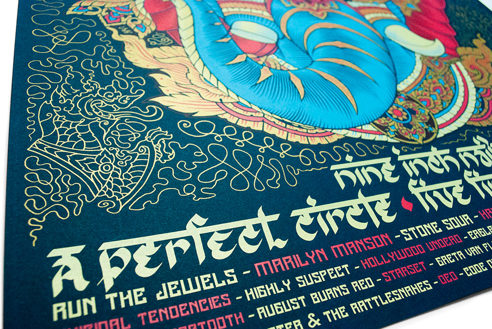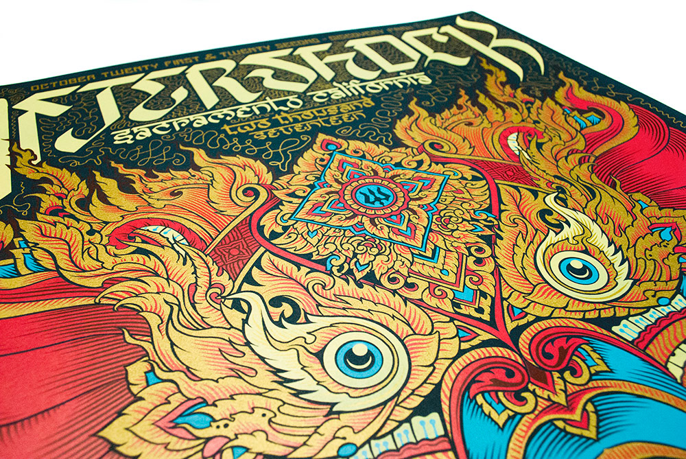 5-Color, Screen-printed 'Aftershock Festival' gig poster - Sacramento, CA 10/21/2017.
