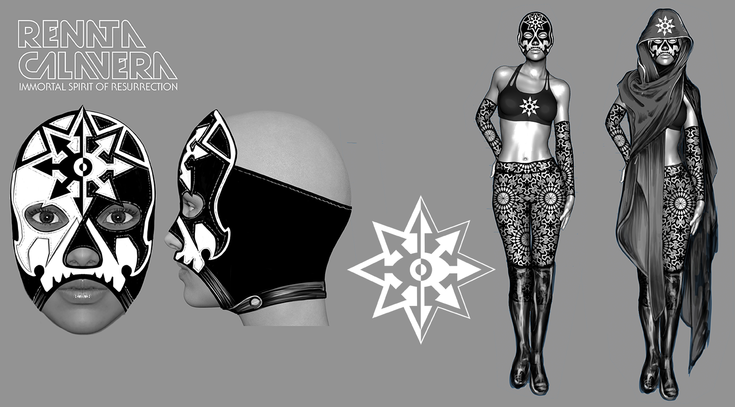 Renata Calavera: Character concept sent to an authentic, lucha libre mask maker in Mexico for production