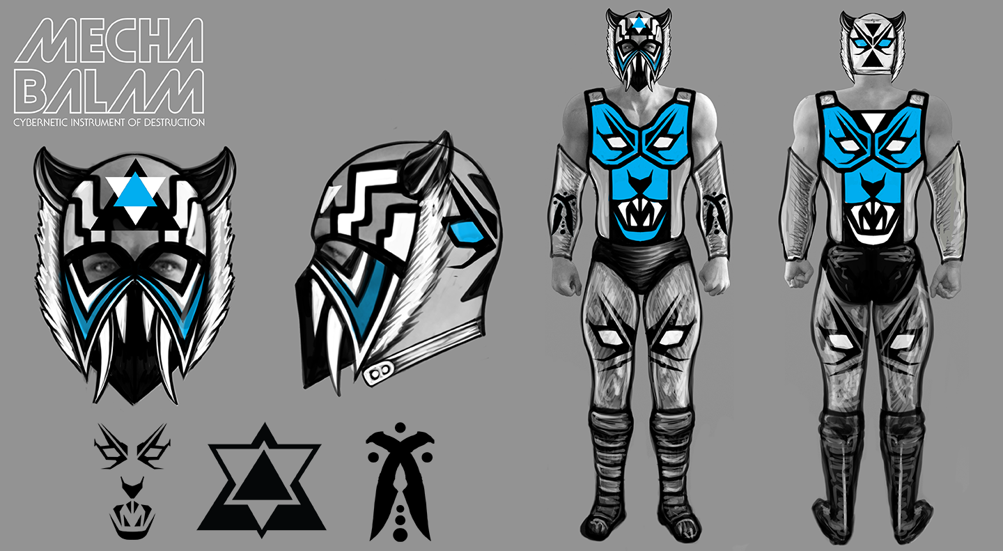 MechaBalam: Character concept sent to an authentic, lucha libre mask maker in Mexico for production
