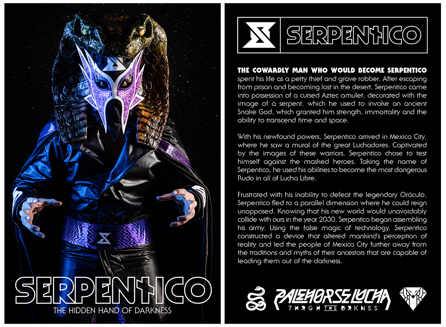 Serpentico: Character concept sent to an authentic, lucha libre mask maker in Mexico for production