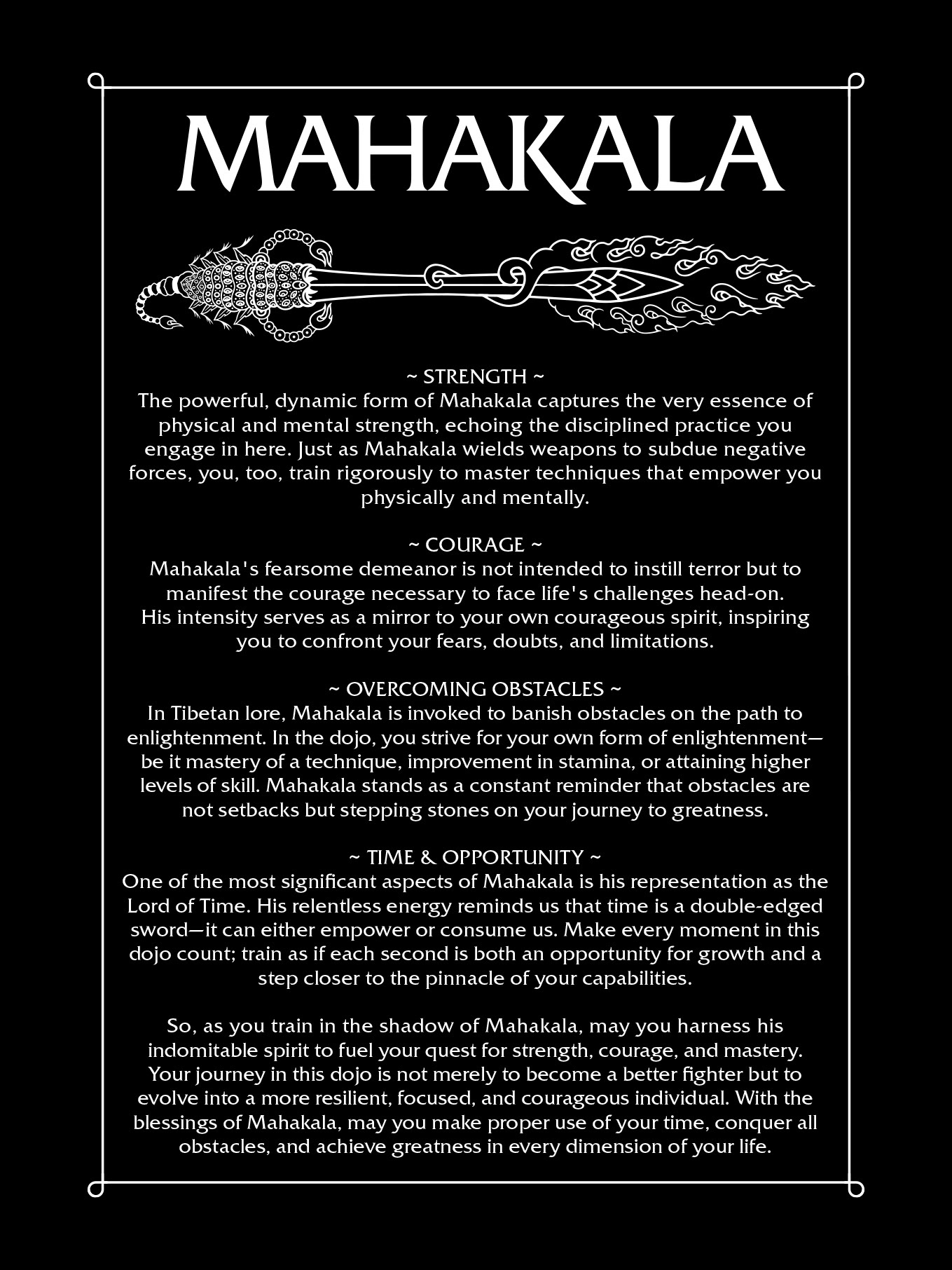 Mahakala's fierce appearance and symbolism represent the transformation of negative emotions and energies into positive qualities. Having his image serves as a reminder to work on transforming your own negativities into wisdom and compassion.