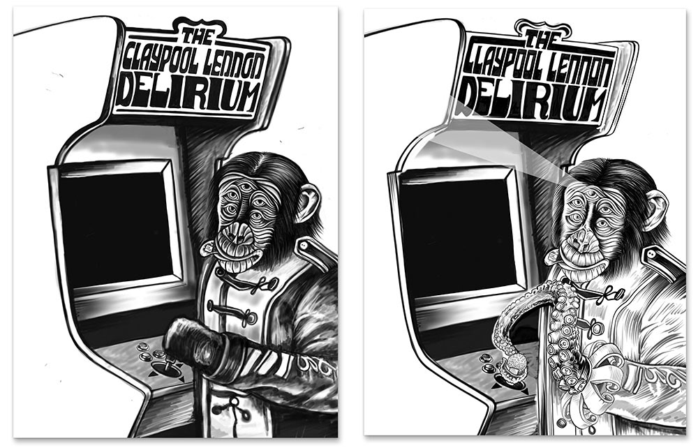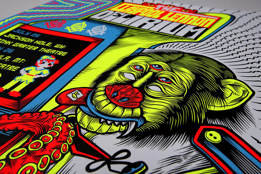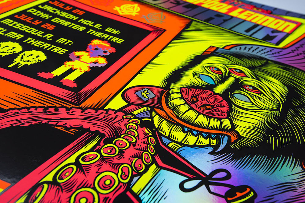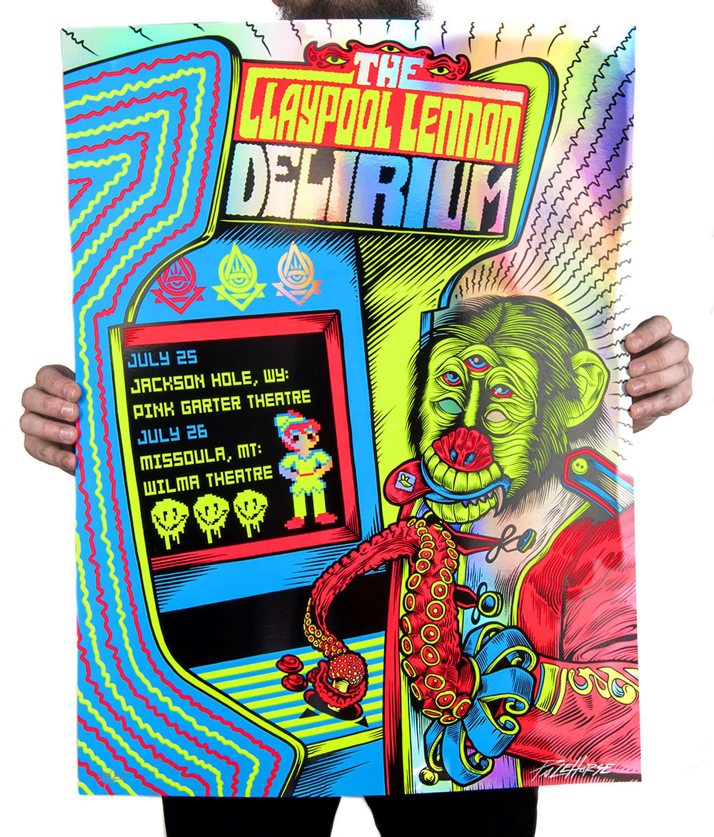 4-Color, Screen-printed, Black Light Reflective 'The Claypool Lennon Delirium' gig poster